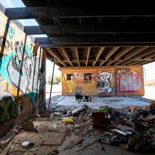 There's an armageddon land. Once an oasis for the stars. They love to say, "Sinatra's hangout". Dude got around... Now, it's a post-apocalyptic barren wasteland that may or may not be inhabited. A fading sea and rumors of litium beneath.